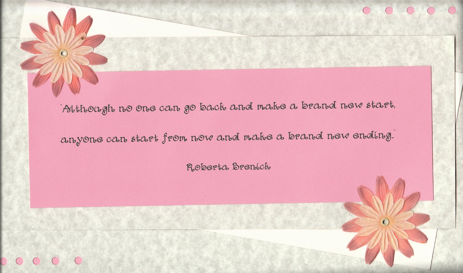 “Although no one can go back and make a brand new start, anyone can start from now and make a brand new ending. ” ~ Roberta Brenick