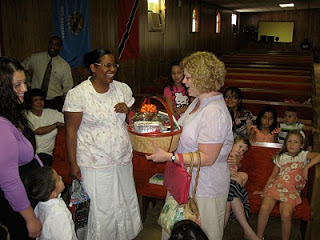 In case you can’t tell I was handed a huge basket filled with baked good and a recipe book with a dessert recipe from each of the ladies. The basket carried a sample of their recipe for me to try. The ring leader told me they were supposed to give her one serving of their dessert, but some had to bring me a full batch. She said she didn’t think it was a problem since I have a family of five.