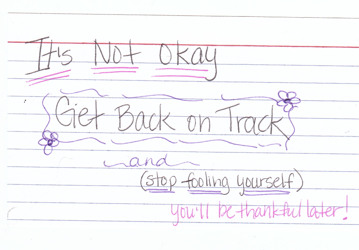 That's an important message and it goes right along with your other mantra – Never Give Up! It can be hard to get back on track, but you can do it.