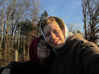 Saturday, the 3rd morning, I didn’t really want to get up, but I made myself. There was too much bothering me. Like I still needed a photo of the road and my son had told me the night before he’d get up and walk with me in the morning. 🙂 Plus there was the fact that I knew I’d feel better after my morning walk. So, I got up and my son joined me – all bundled and full of chit chat.