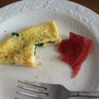 First there was Saturday morning where I enjoyed a delicious breakfast of turkey bacon and an omelet made of 1 egg, 1 egg white, a few spinach leaves and less than an ounce of cheese for a grand total of 168 calories. So yummy!!!