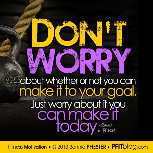 As new-to-me fitness blogger and professional, Bonnie Pfiester, stated perfectly in a post The Secret to Reaching Your Goal, “While goals are very important, I believe some people are so overwhelmed with the end-goal, that they forget they really only have one task today – and that is to reach TODAY’s goal.”
