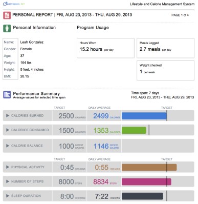 As per my commitment, here’s my BodyMedia report for this week.  It looks a little weird to me and I think it’s because I totally forgot to wear it one day and then I can’t remember if I tracked all my food one day I did wear it.