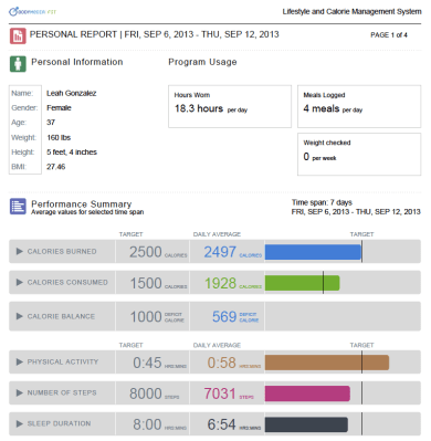 Here’s the weekly BodyMedia report: