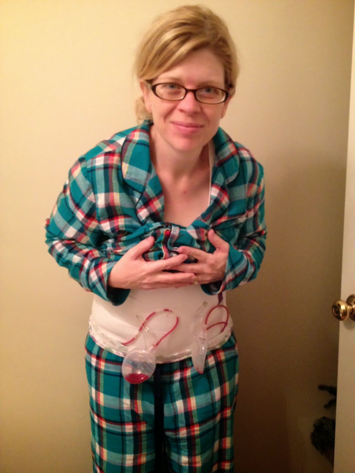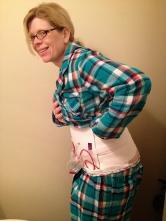 Tomorrow is my first follow up appointment and they will change my dressings. So hopefully I’ll be able to see my incisions and my new belly button then. 🙂 I’ll be wearing this binder for a few weeks and hopefully the drains will be out in a week. We’ll see what the doctor says tomorrow.
