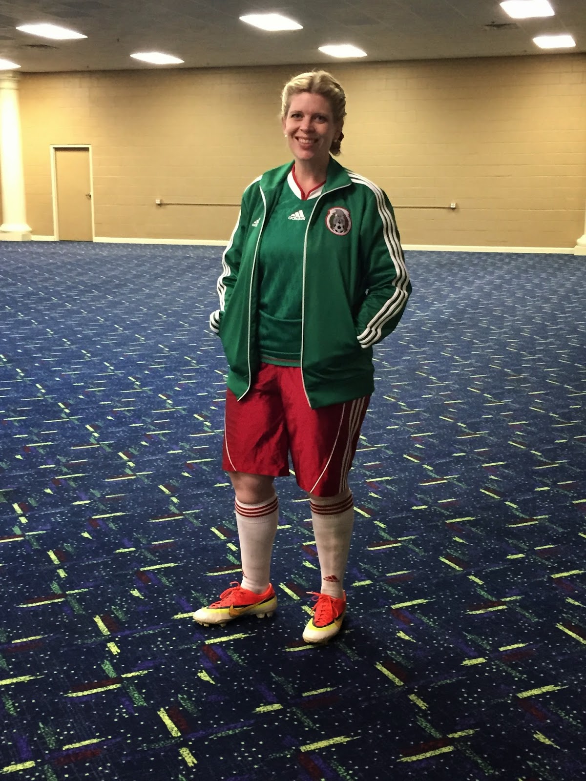 And it wouldn’t be right to post on here without saying I’m thankful I am truly making a healthier, happier ending in my life. I’ll never regret taking the first step towards becoming healthier. Had I not done that I couldn’t have borrowed my husband and son’s clothing to dress up like a soccer girl for a sports-themed baby shower recently. [more grinning]