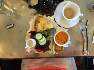 My little trip consisted of a tea lunch with some friends for one of my best friend’s birthday at Inspirations Tea Room in Edmond, Oklahoma. I thoroughly enjoyed my berry scone with lemon curd, followed by a delicious Quiche Lorraine, salad and Tomato Bisque soup.